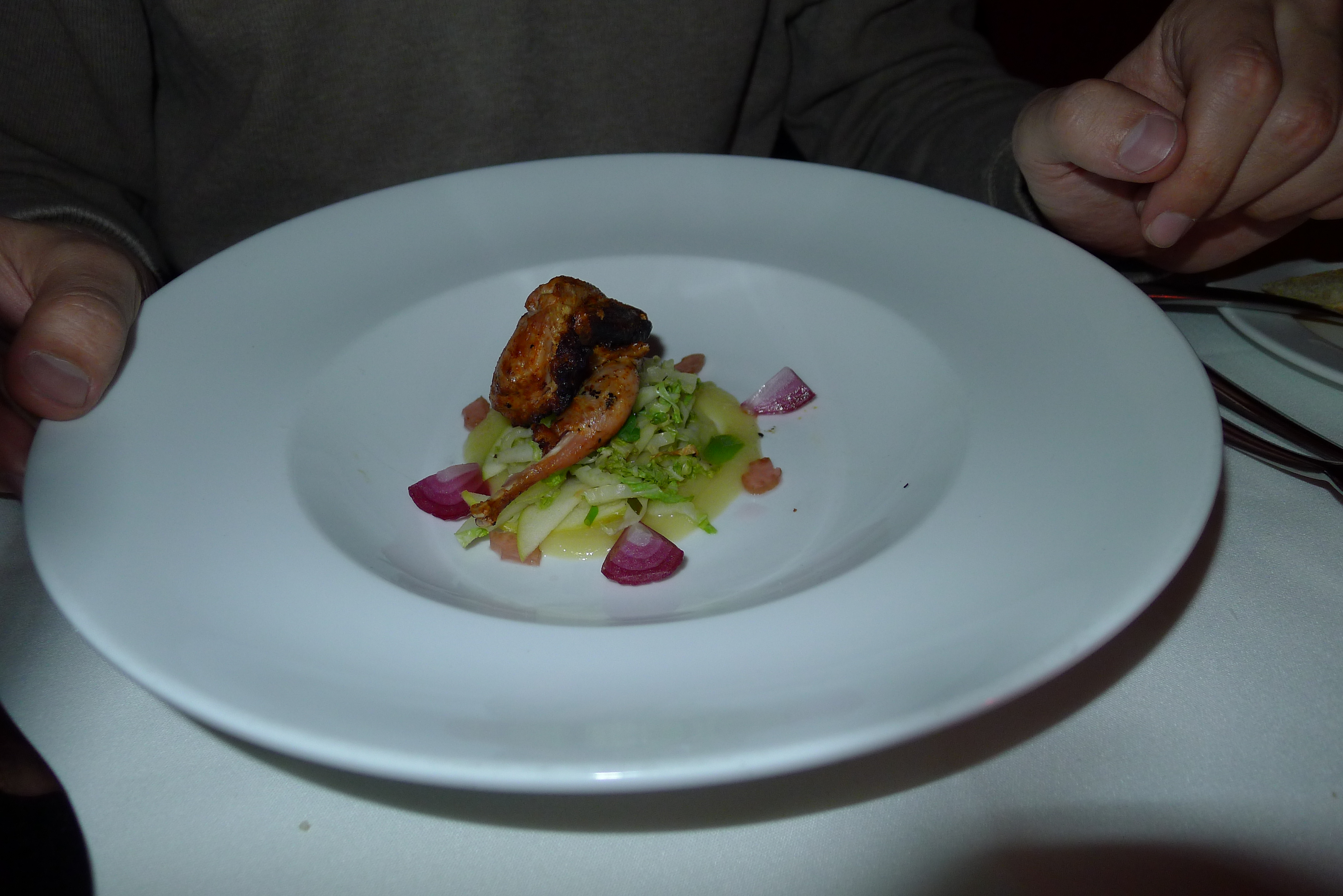 His dinner at AG which was the rabbit, new to the menu! And his appetizer!