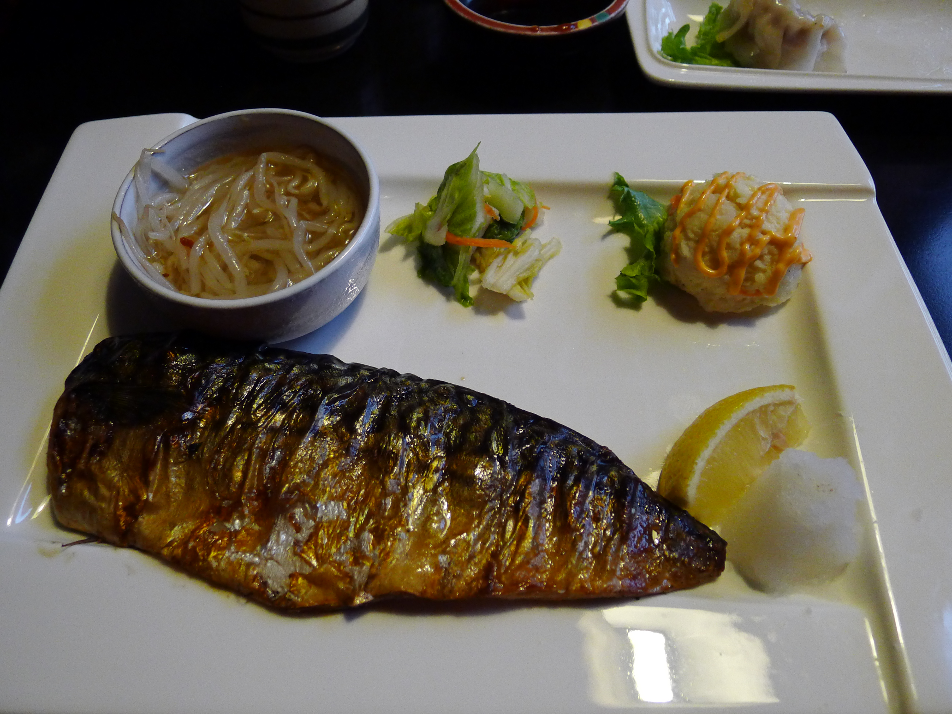 The grilled mackerel was great, all the grilled fish awesomeness that I had expected (and wanted). The surprising part came from the potato salad pictured on upper right hand corner, the spicy mayo complimented the potato salad well. I need to figure out how to make spicy mayo.