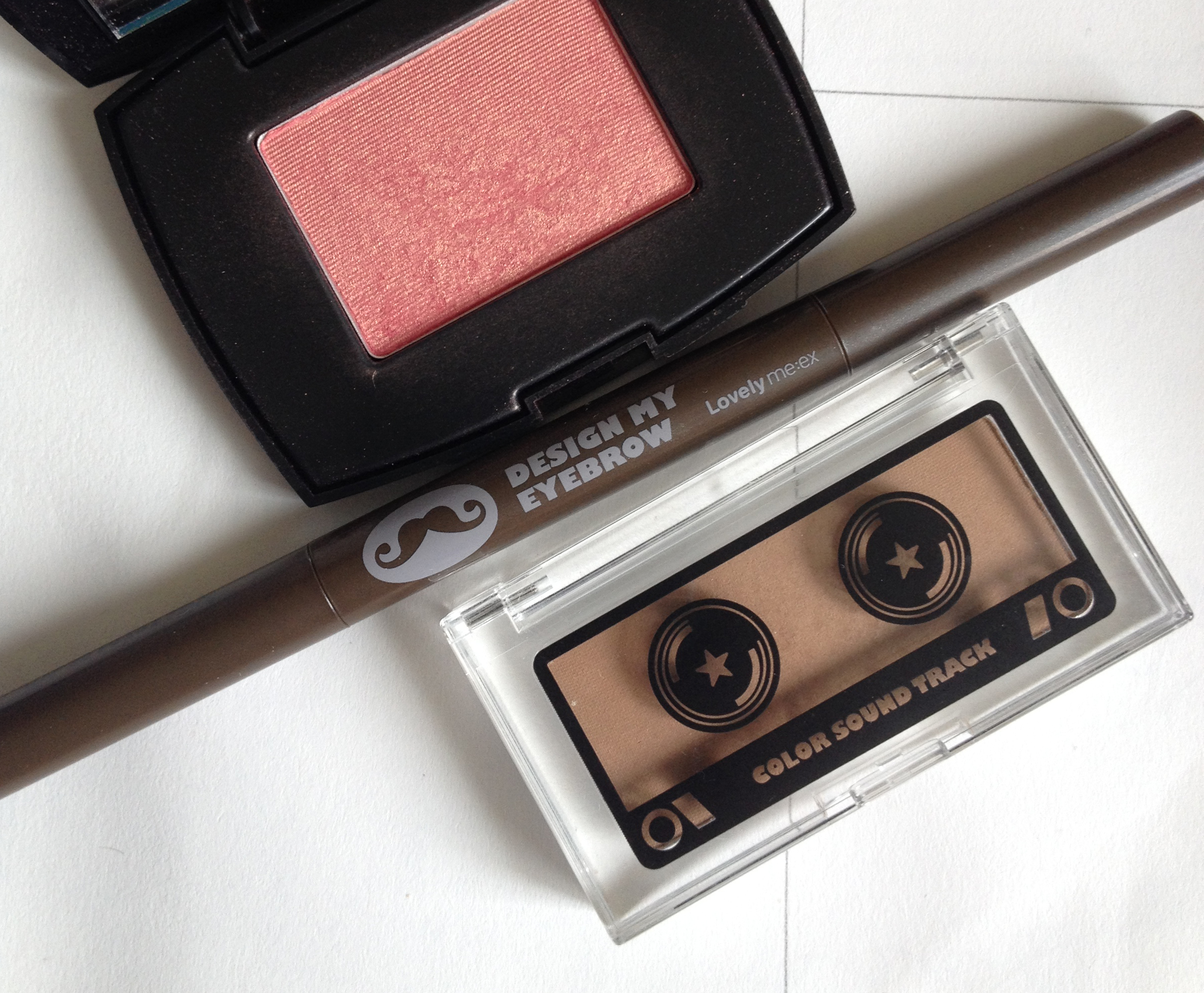 First The Face Shop Lovely ME:EX Design My Eyebrow in shade (05) which is the darkest grey brown as recommended by the store associates. I also got the Lovely ME:EX You & Face Blusher in (09) cinnamon dream, which is their darkest contour color and their Eyelashes (01)? No idea they were the “smallest” looking ones so I thought they’d be more natural.