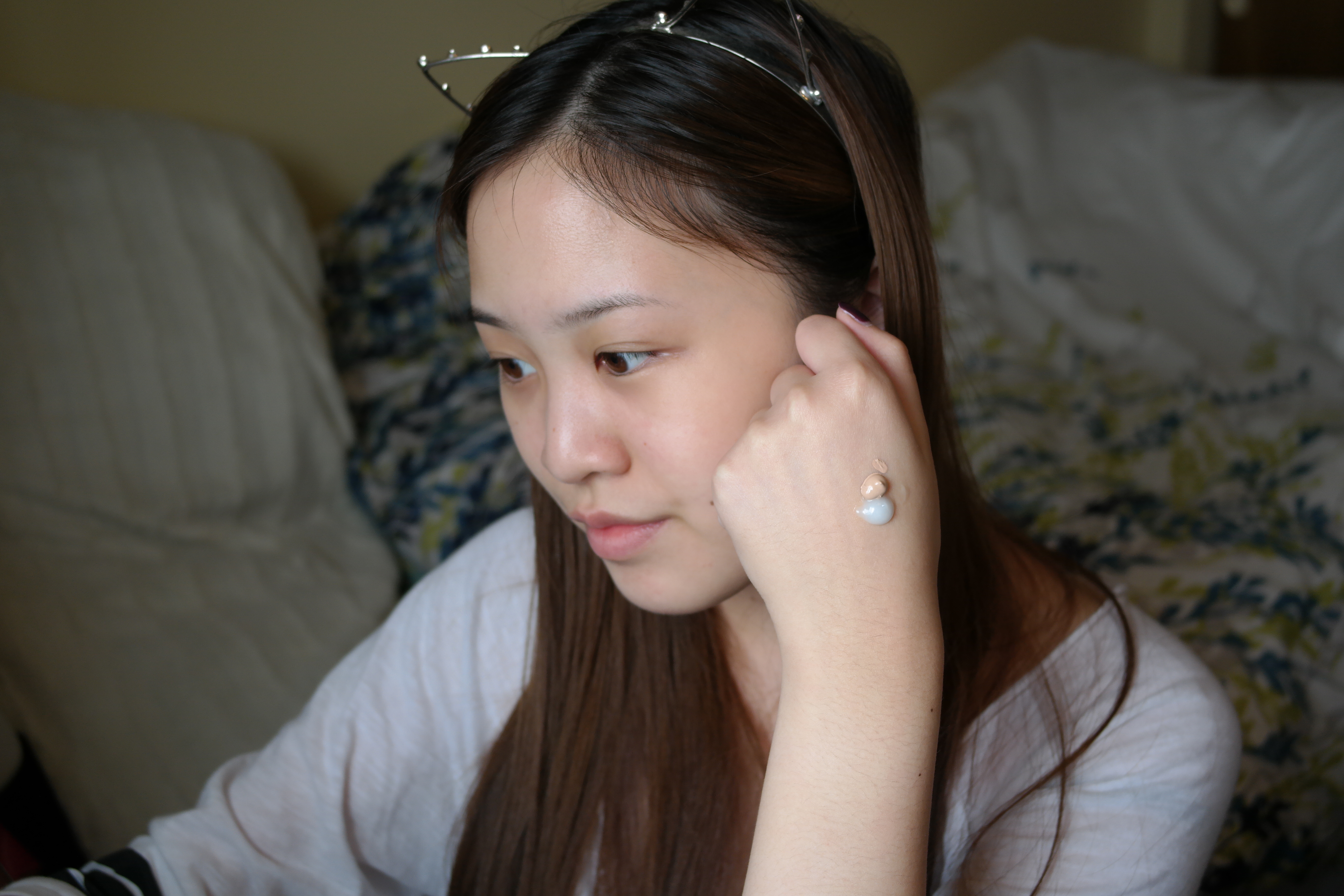 First, using it as a primer, I’ll put it on before foundation. You’ll see it mattefies my face and almost makes me a bit whiter, sort of like Missha’s MM Bloomer.
