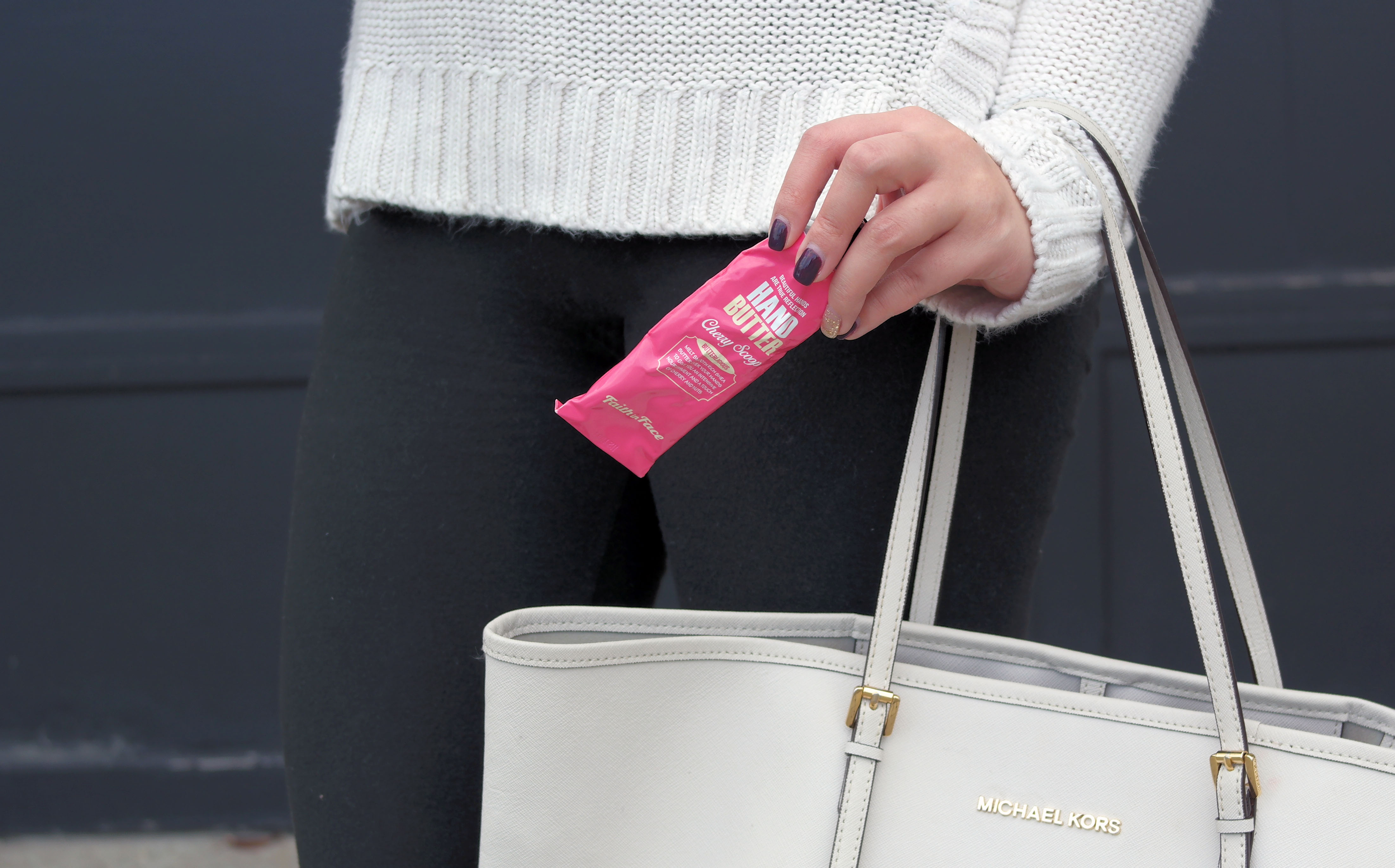 I usually keep a hand cream in my bag, whether it be my school bag or my handbag, I pride myself on my soft supple hands. Them boys, like my soft hands, they like to hold my hand. Plus I like soft skin in general. What’s great about this hand butter is that it’s pretty compact like my Tocca hand creams and Bath and Body works hand creams, so they slip in and out of different bags easily.