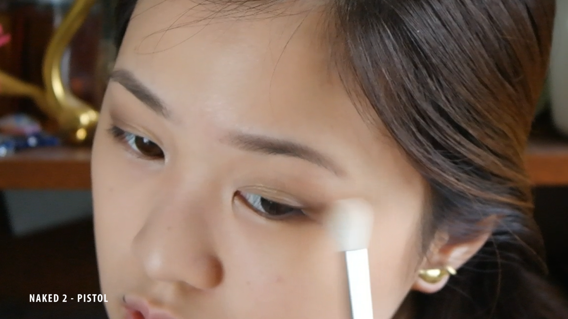 And then I’m going to put a light shimmer on the middle of my lids NAKED2 HALF BAKED.