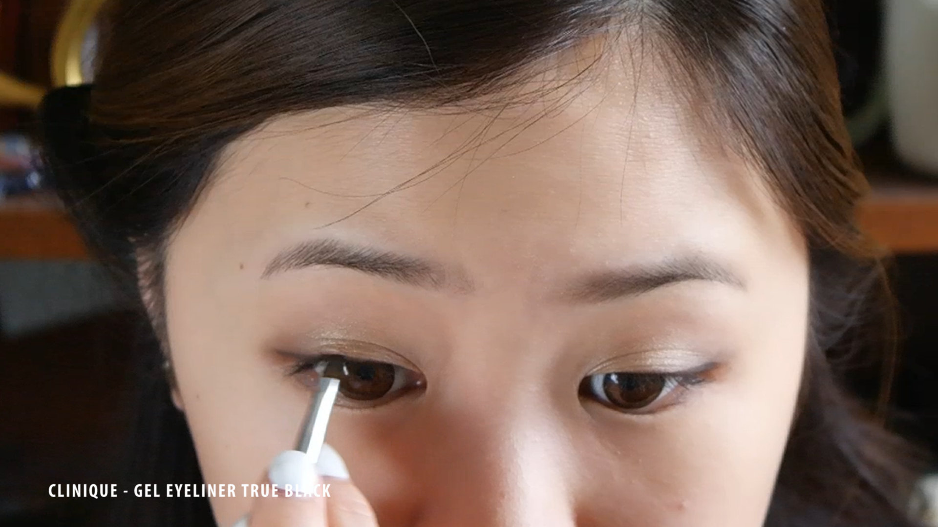 After that I’ll highlight my brow bone again with NAKED2 – FOXY and tightline my eyes using CLINIQUE – GEL EYELINER TRUE BLACK.