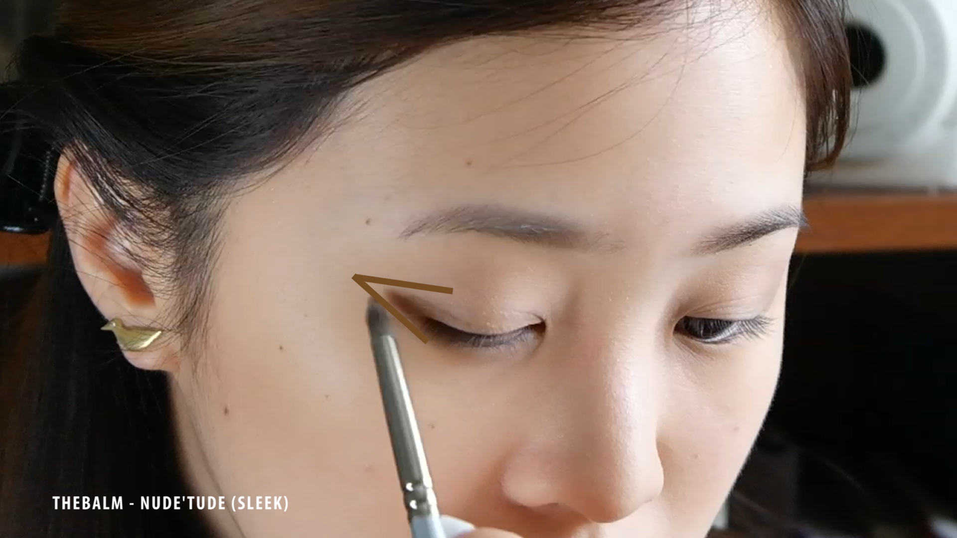 First off I’m going to use NAKED2 – TEASE in the crease of my eyelid and then with a pointed shadow brush I’m going to build the gradation (brown hues)