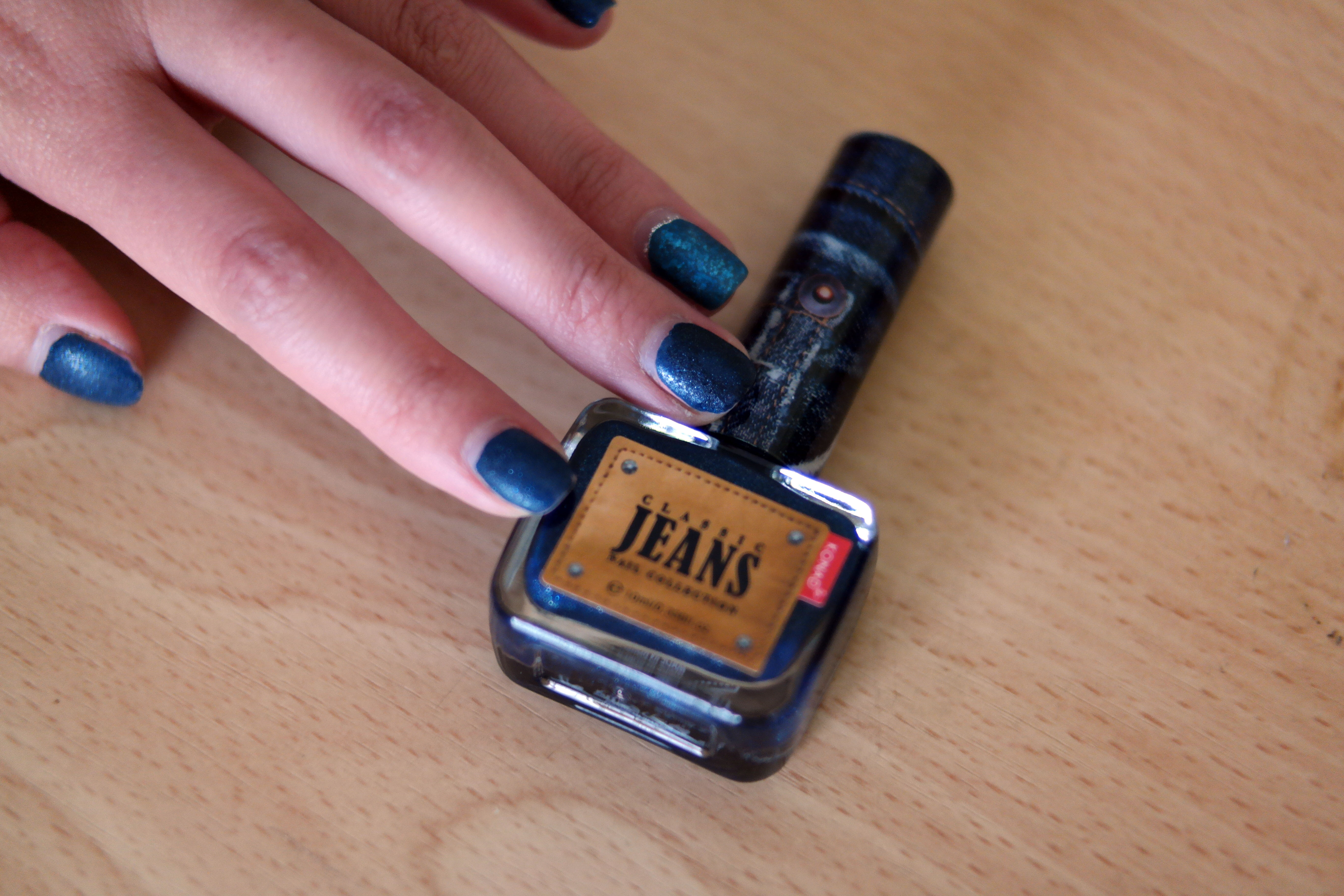When I first saw them I was pretty confused because they were described as a jean like nail product but on the outside it looked glittery. I found out later it dries out in a cool matte and textured polish. Quite a fun transformation.
