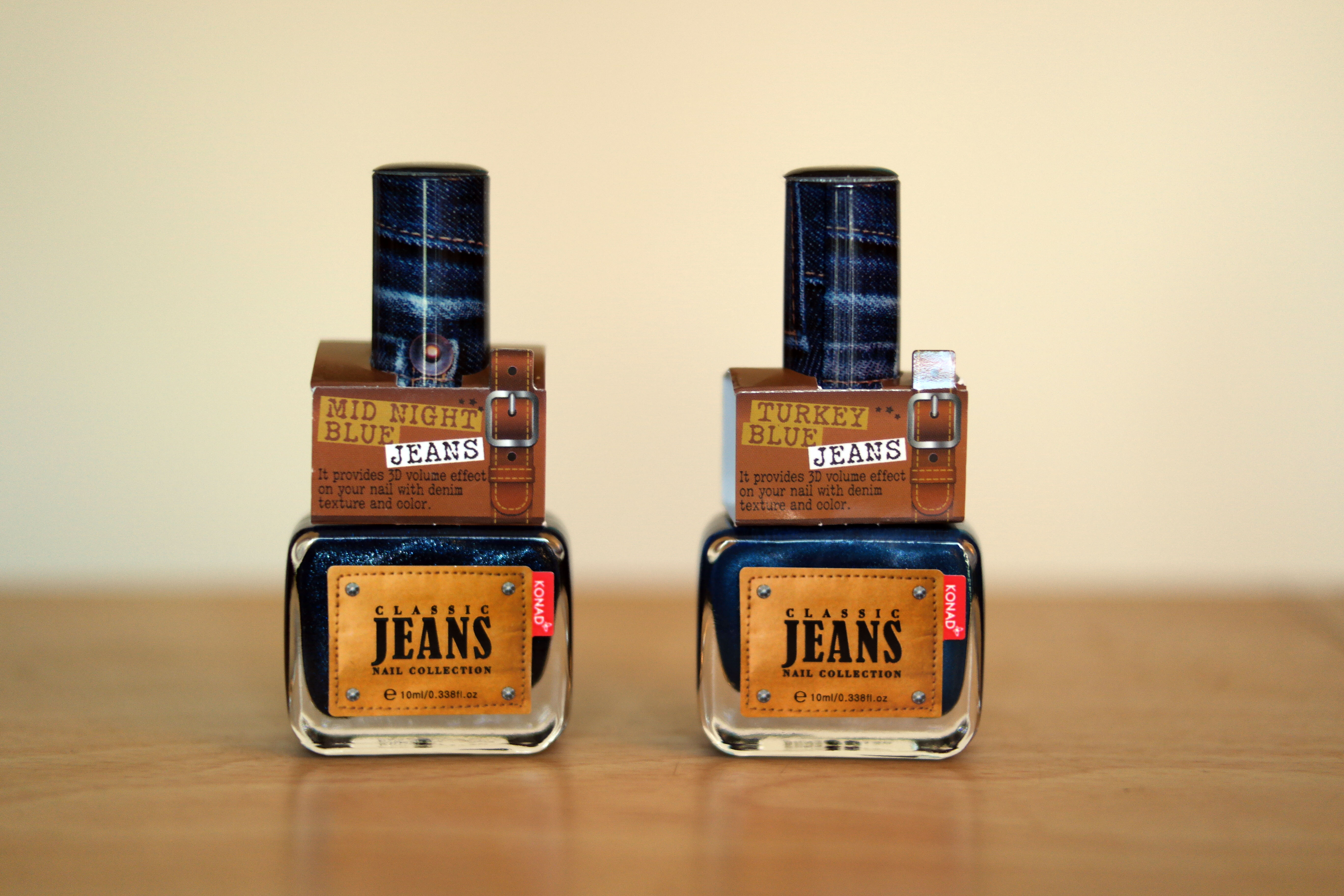 I’m back again with another Konad product, today I’ll be reviewing their Classic Jeans Nail Polish in shades Midnight Blue Jeans and Turkey Blue Jeans(yum turkeys, I want a sandwich now).